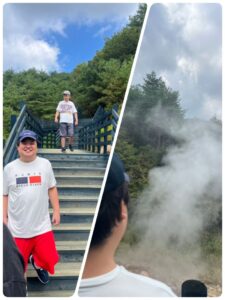 熱気を感じながら湯けむりを見つめる姿から、楽しみにしている様子が伝わってきました。