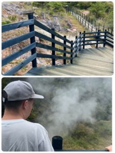 小松地獄に到着すると、もくもくと立ちのぼる湯けむりと、独特の硫黄の香り。