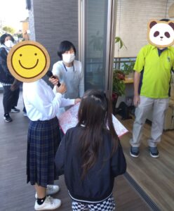 当日は、応援として生活介護のメイトも加わり、20数名で出発。まずは高校生の女の子の