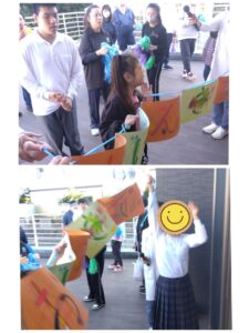 お別れする時は、子どもたちが描いた「おげんきで」「またくるね」の手作り垂れ幕を掲げ、みんな元気いっぱいにご挨拶し、楽しい時間を笑顔で締めくくることが出来ました。