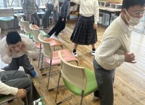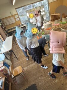 今回の地震の記憶が新しいうちにもう一度子どもたちと一緒に災害(地震)が起きた時にどのような行動をとればよいのかを考え、訓練を行いました。