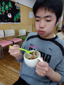 その日は、頑張ったご褒美にみんなでぜんざいを作り、おやつの時においしくいただきました。
