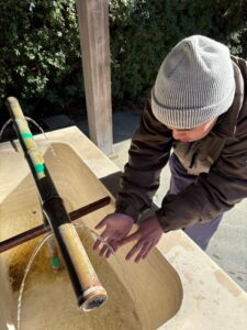 水が苦手で指先だけを濡らしていこうとする方、両手を清めた後に口や頬っぺたまで濡らす方もいました(笑)