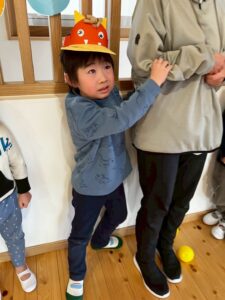 さて、2月といえば節分ですね!今年は子ども達が作った鬼のサンバイザーを付けて、まずは小鬼探しからスタートです♩